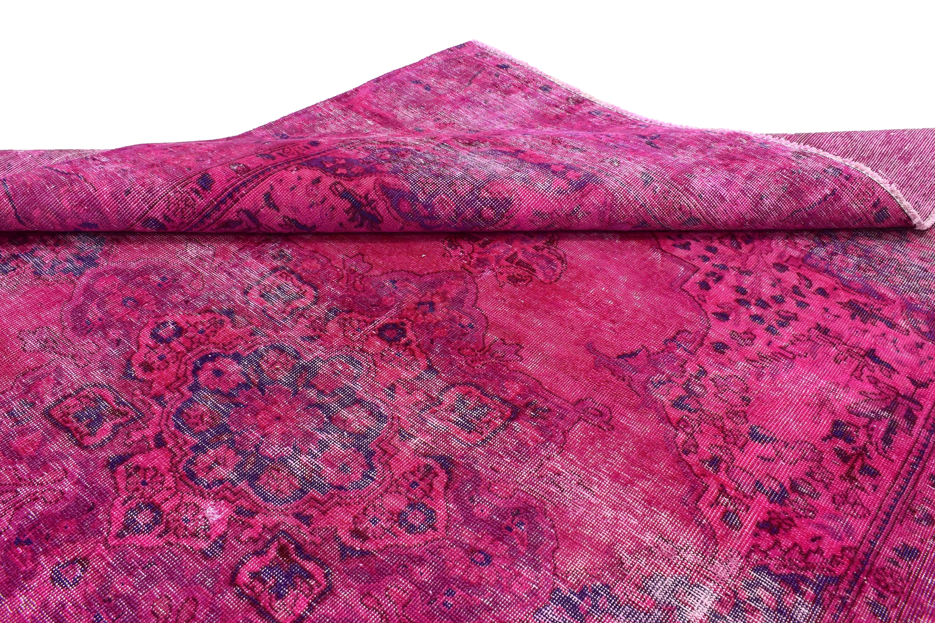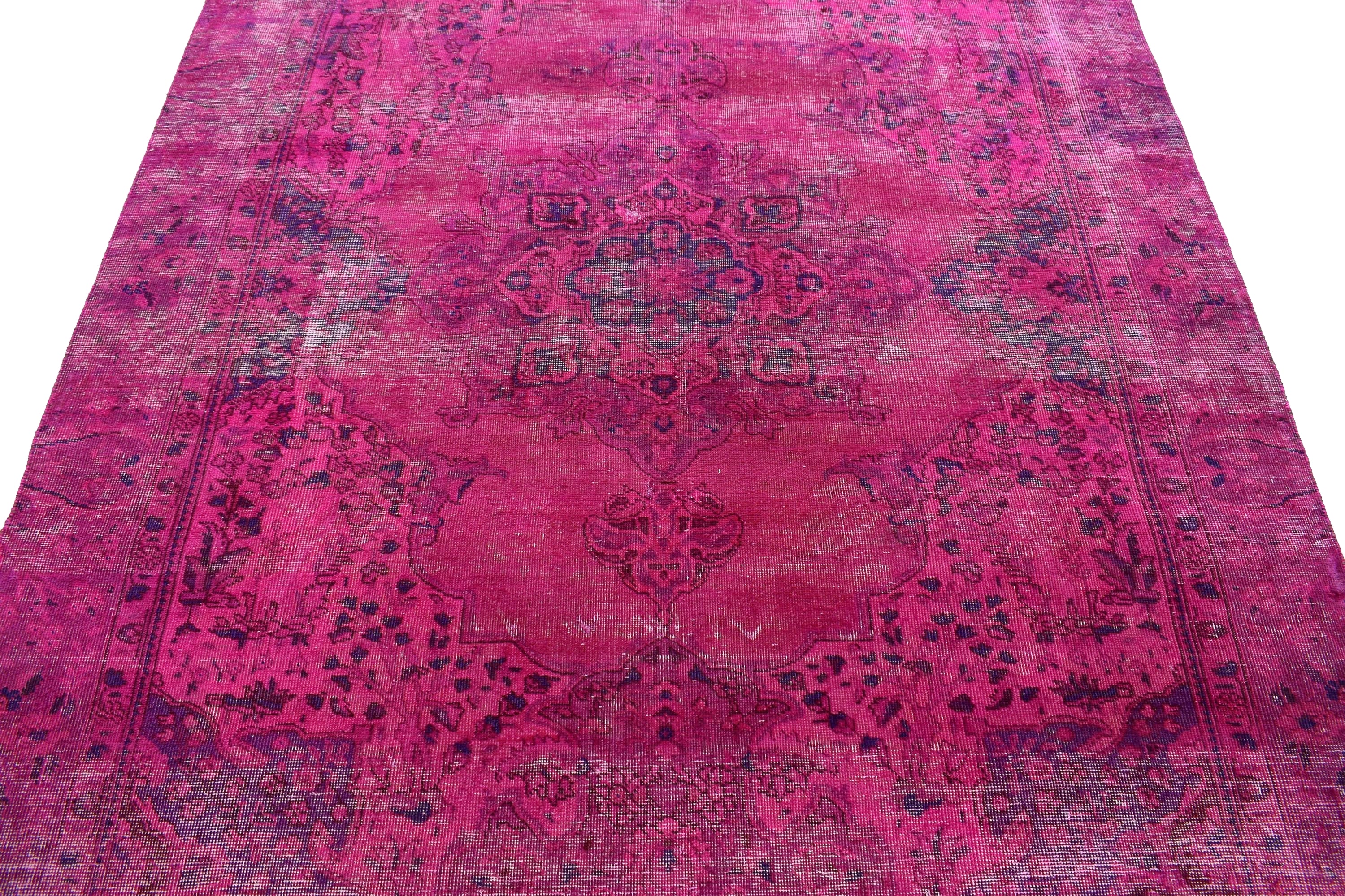 About Overdyed Rug: This beautiful rug was hand-woven in 1970's in Tabriz, Iran. Later, this vintage rug has been shaved down to a low pile, deep washed and then re-dyed (overdyed) one color. Overdyed rugs have a low pile height. Over-dyed rugs keeps the traditional style with a modern twist. Overdyed rugs are shaved rugs so they do not have a soft pile.
