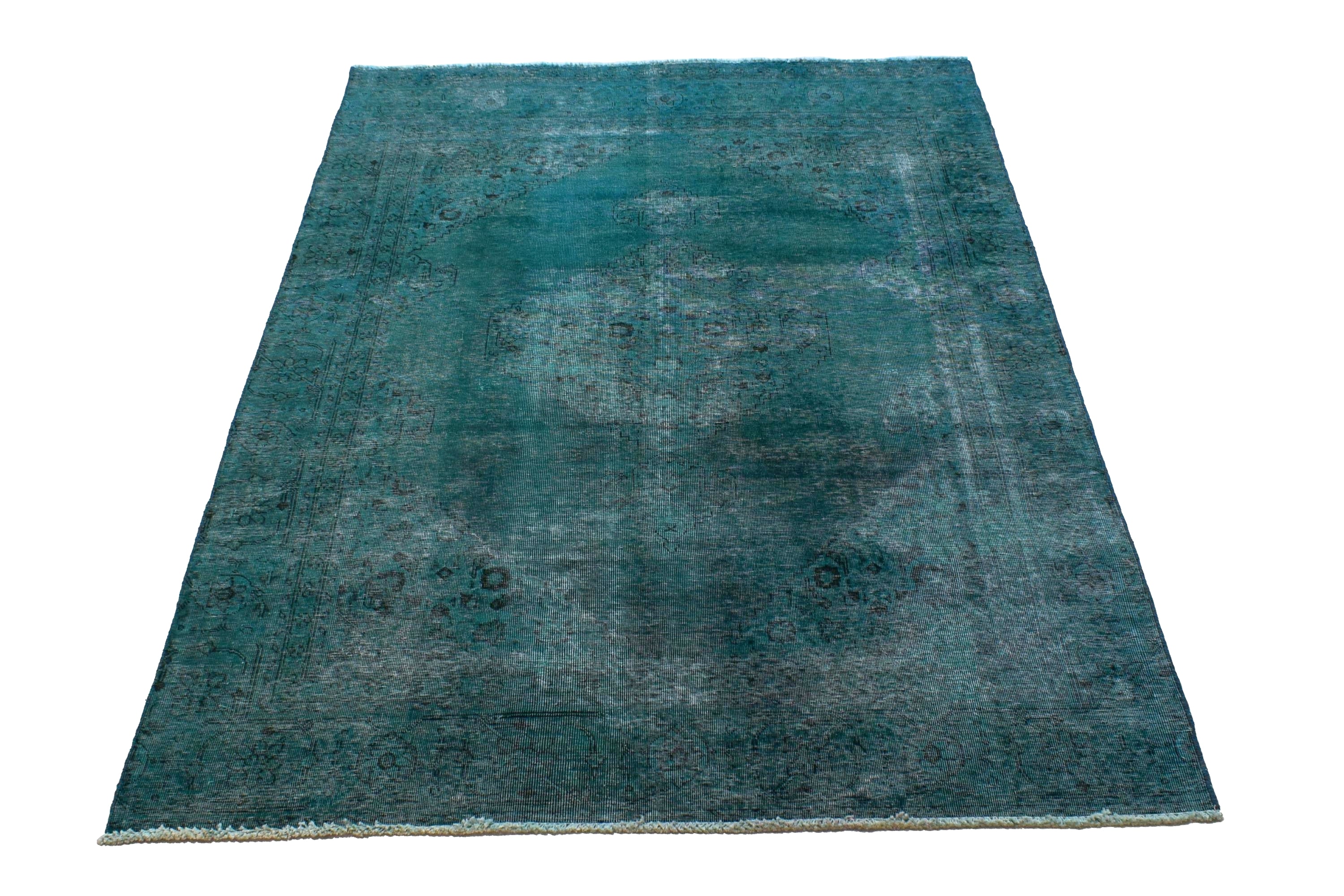 About Overdyed Rug: This beautiful rug was hand-woven in 1970's in Tabriz, Iran. Later, this vintage rug has been shaved down to a low pile, deep washed and then re-dyed (overdyed) one color. Overdyed rugs have a low pile height. Over-dyed rugs keeps the traditional style with a modern twist. Overdyed rugs are shaved rugs so they do not have a soft pile.