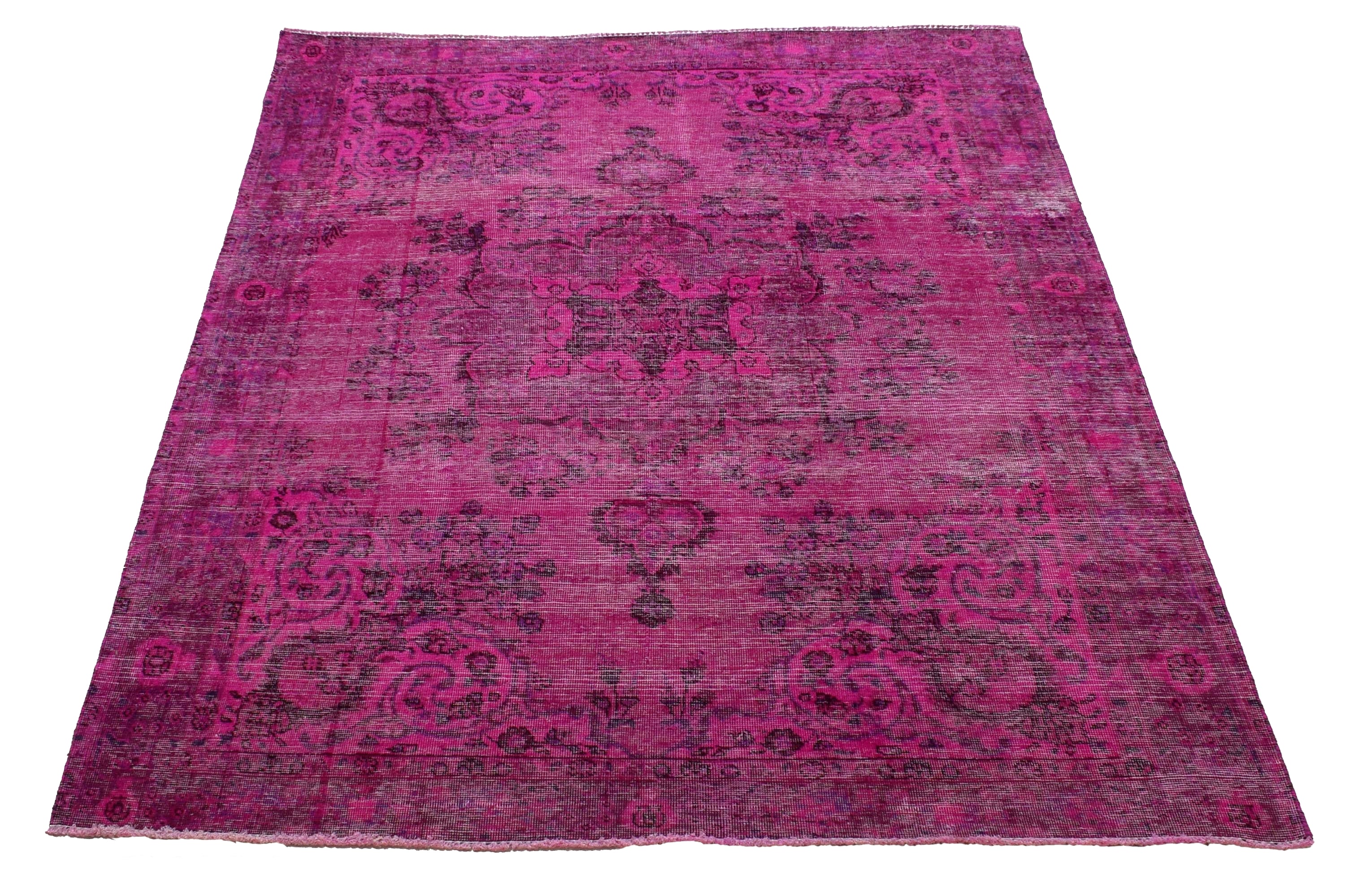 About Overdyed Rug: This beautiful rug was hand-woven in 1970's in Tabriz, Iran. Later, this vintage rug has been shaved down to a low pile, deep washed and then re-dyed (overdyed) one color. Overdyed rugs have a low pile height. Over-dyed rugs keeps the traditional style with a modern twist. Overdyed rugs are shaved rugs so they do not have a soft pile.