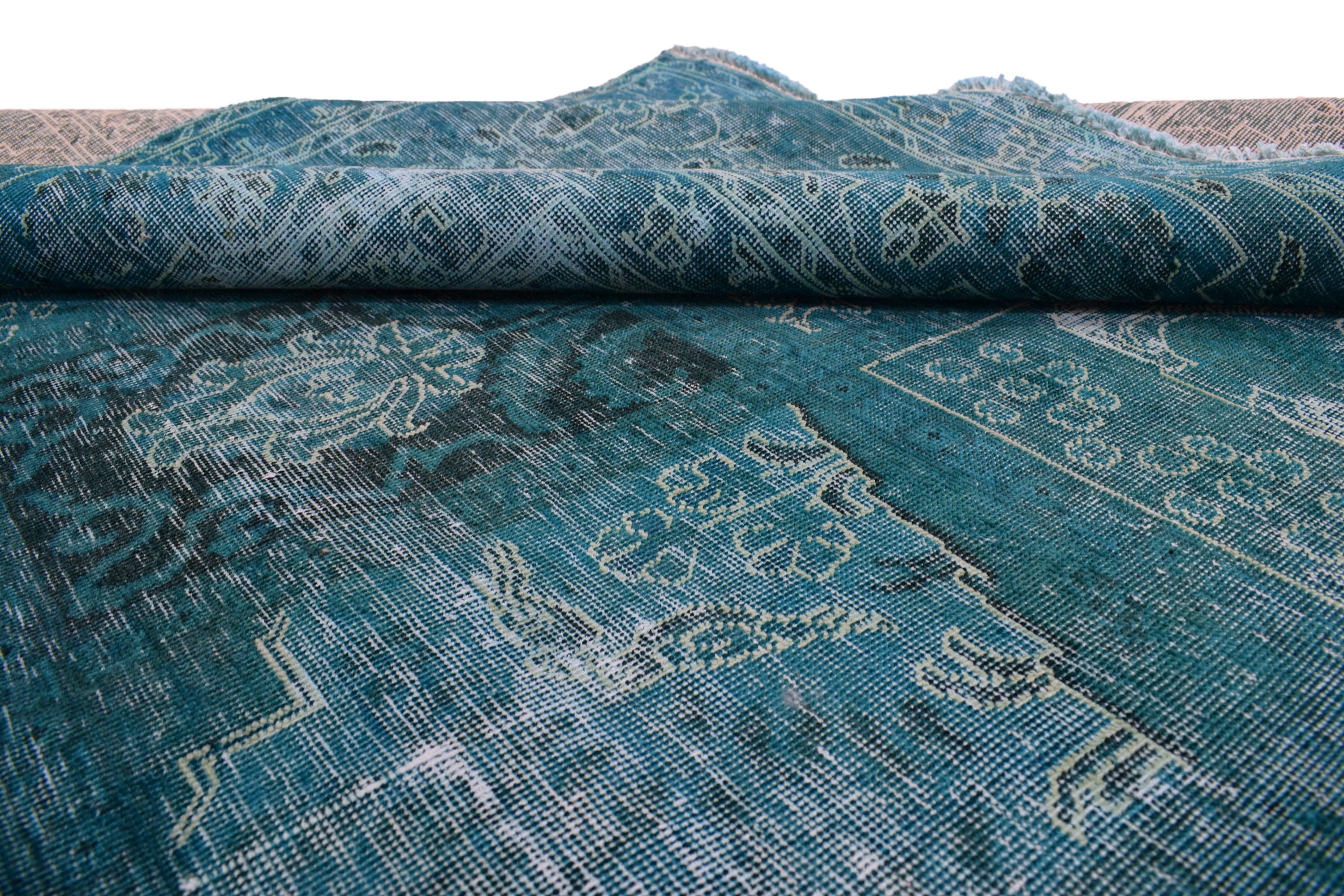 About Overdyed Rug: This beautiful rug was hand-woven in 1970's in Tabriz, Iran. Later, this vintage rug has been shaved down to a low pile, deep washed and then re-dyed (overdyed) one color. Overdyed rugs have a low pile height. Over-dyed rugs keeps the traditional style with a modern twist. Overdyed rugs are shaved rugs so they do not have a soft pile.