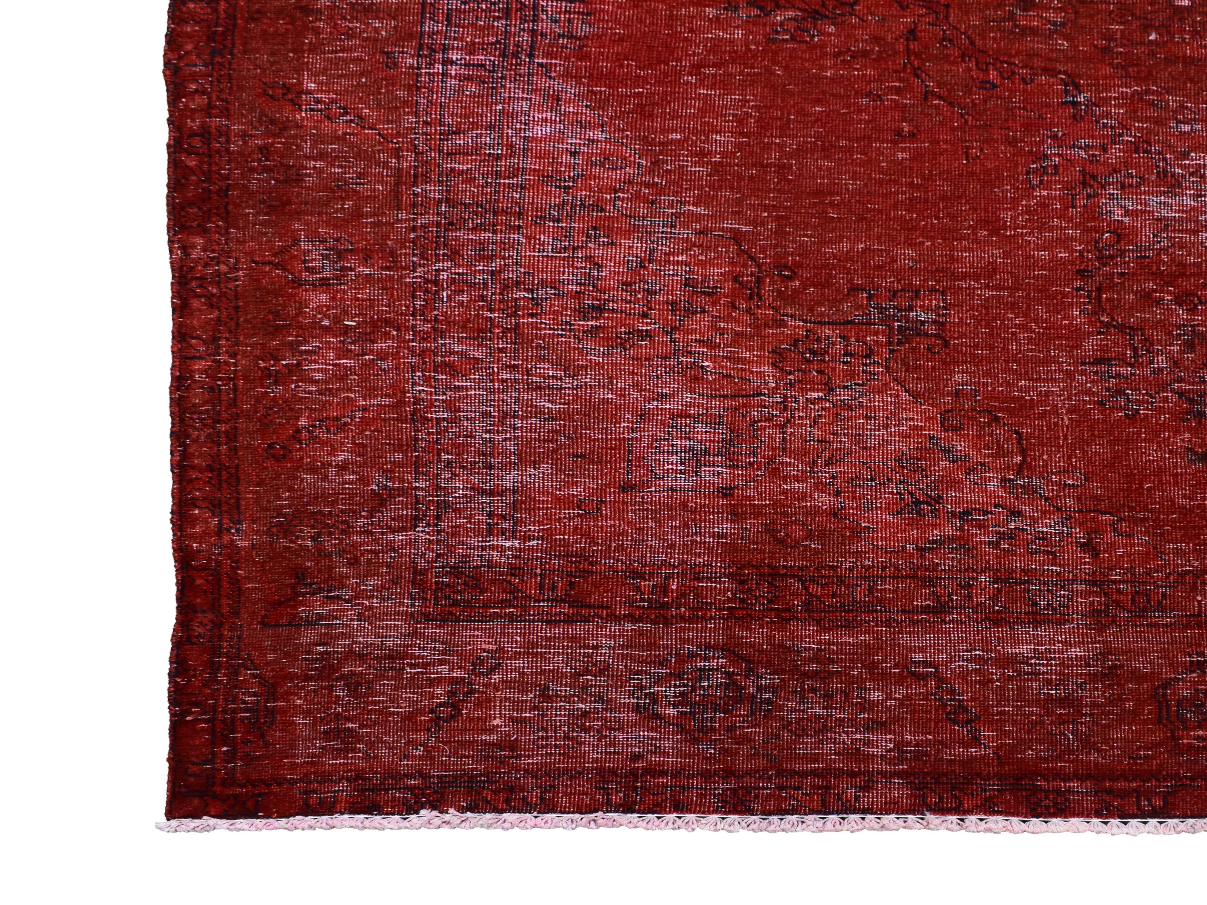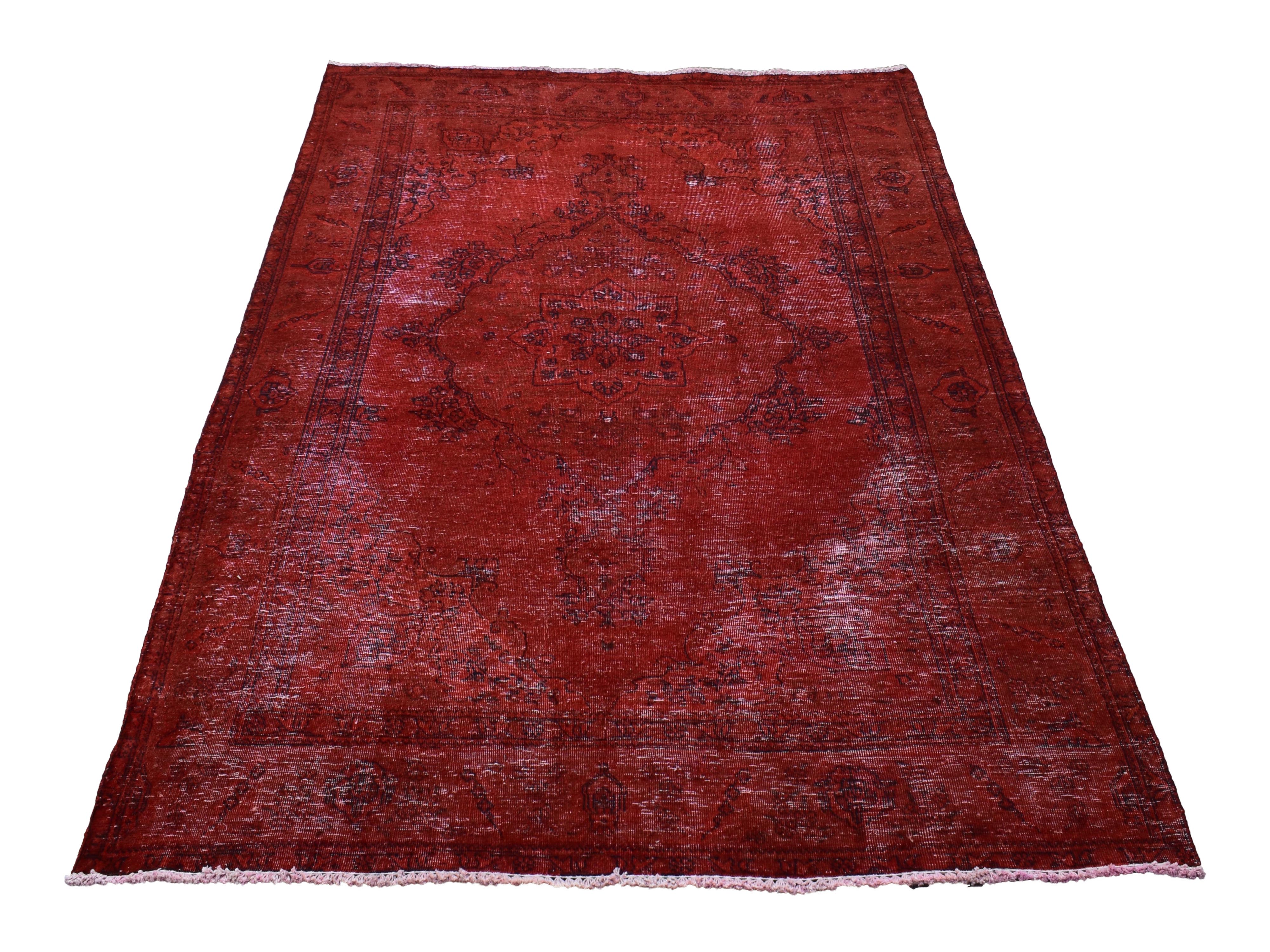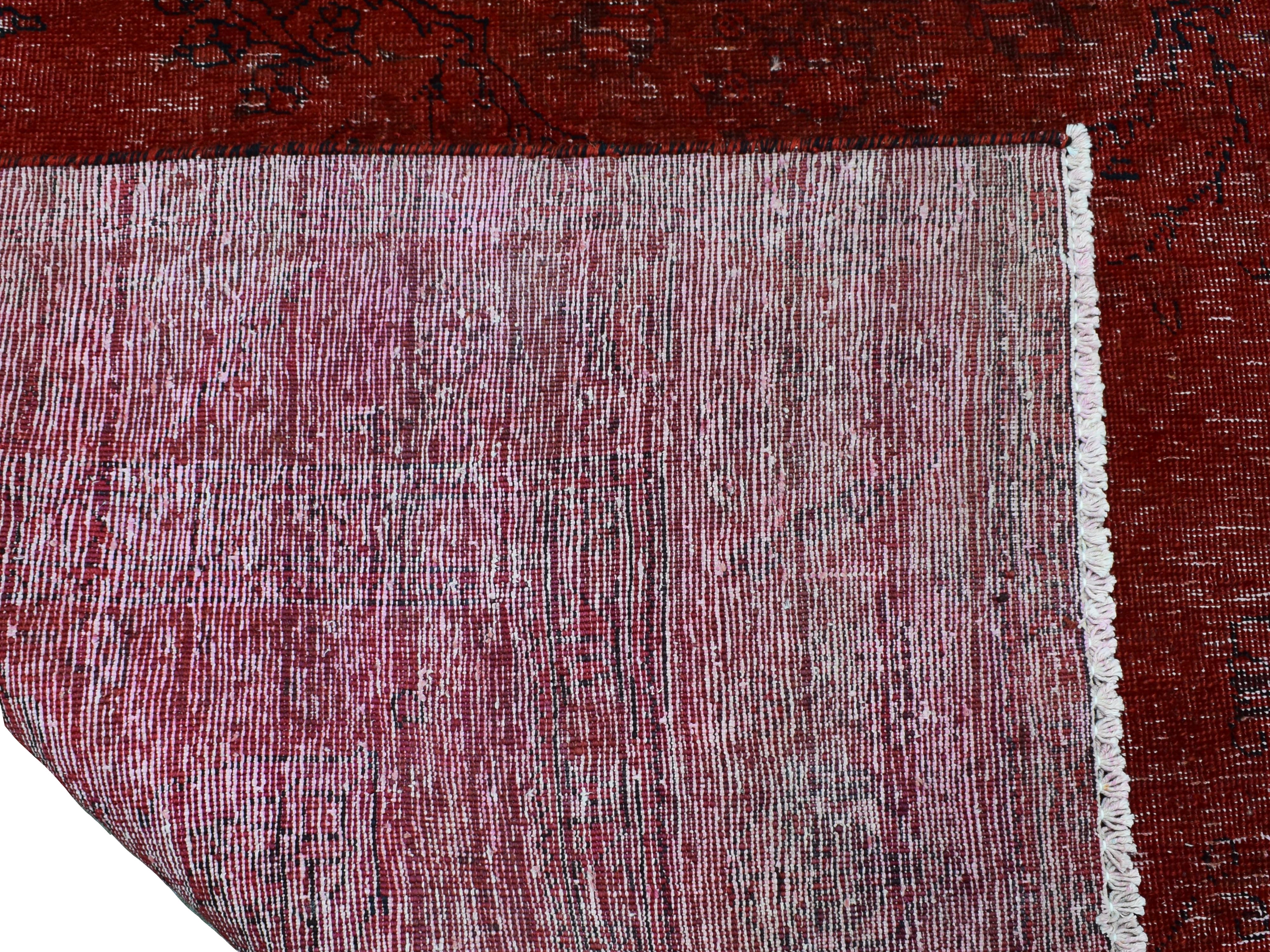About Overdyed Rug: This beautiful rug was hand-woven in the 1970s in Tabriz, Iran. Later, this vintage rug has been shaved down to a low pile, deep washed and then re-dyed (overdyed) one colour. Overdyed rugs have a low pile height. Over-dyed rugs keep the traditional style with a modern twist. Overdyed rugs are shaved rugs so they do not have a soft pile.