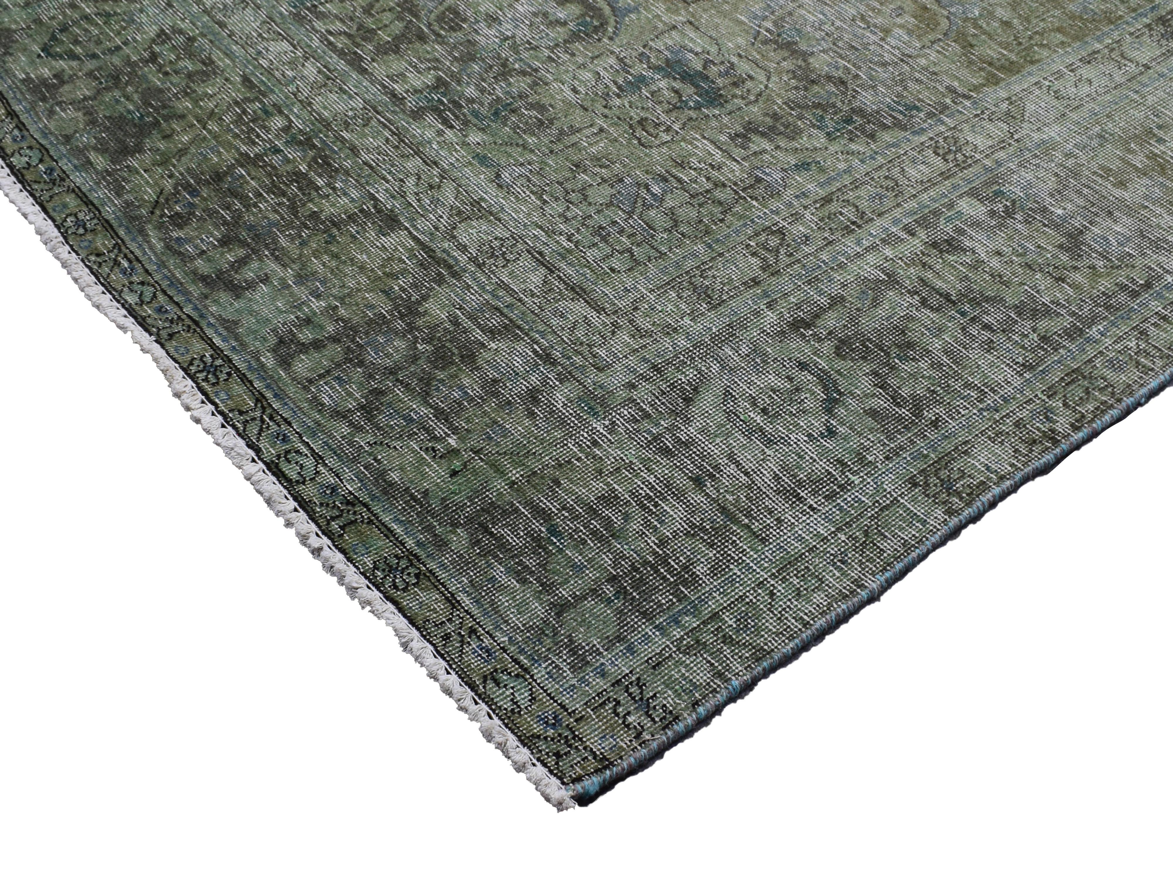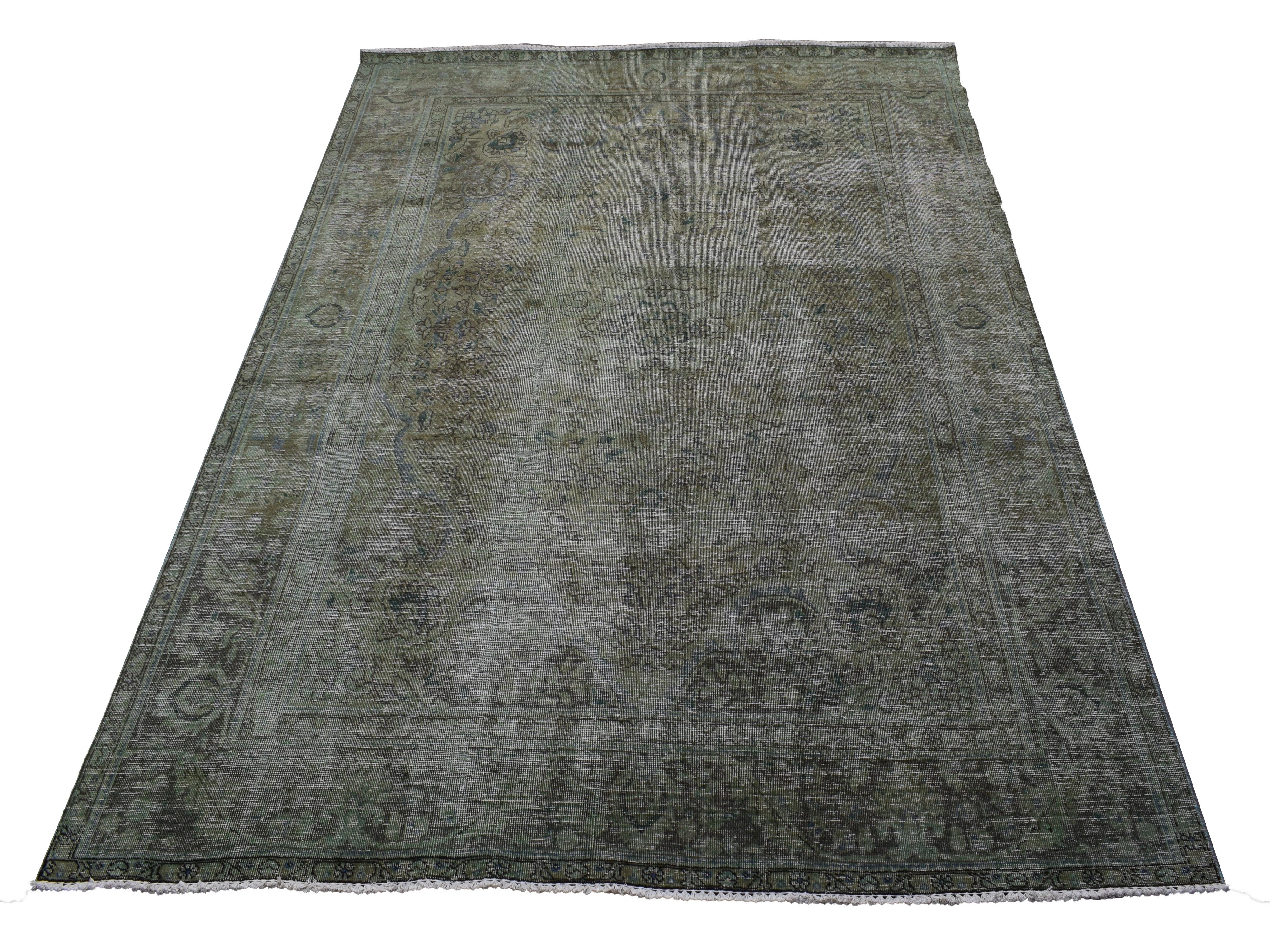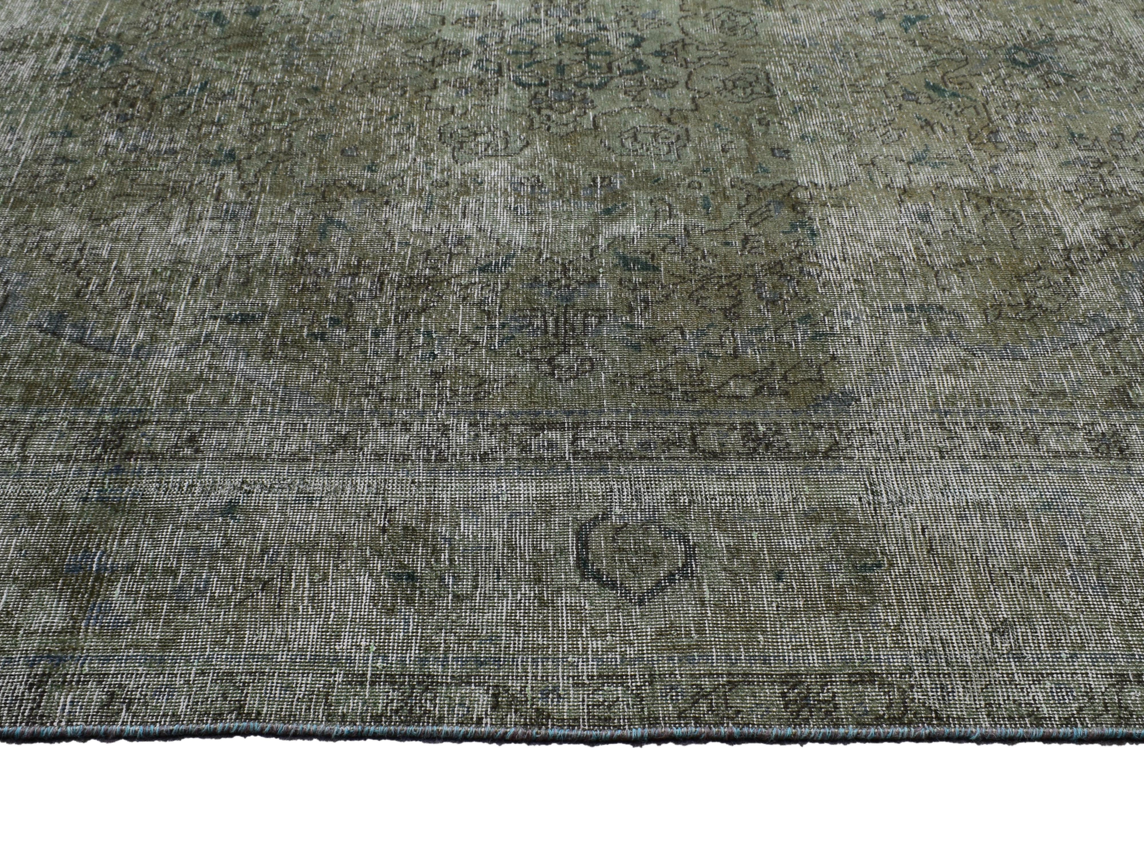 About Overdyed Rug: This beautiful rug was hand-woven in the 1970s in Tabriz, Iran. Later, this vintage rug has been shaved down to a low pile, deep washed and then re-dyed (overdyed) one colour. Overdyed rugs have a low pile height. Over-dyed rugs keep the traditional style with a modern twist. Overdyed rugs are shaved rugs so they do not have a soft pile.