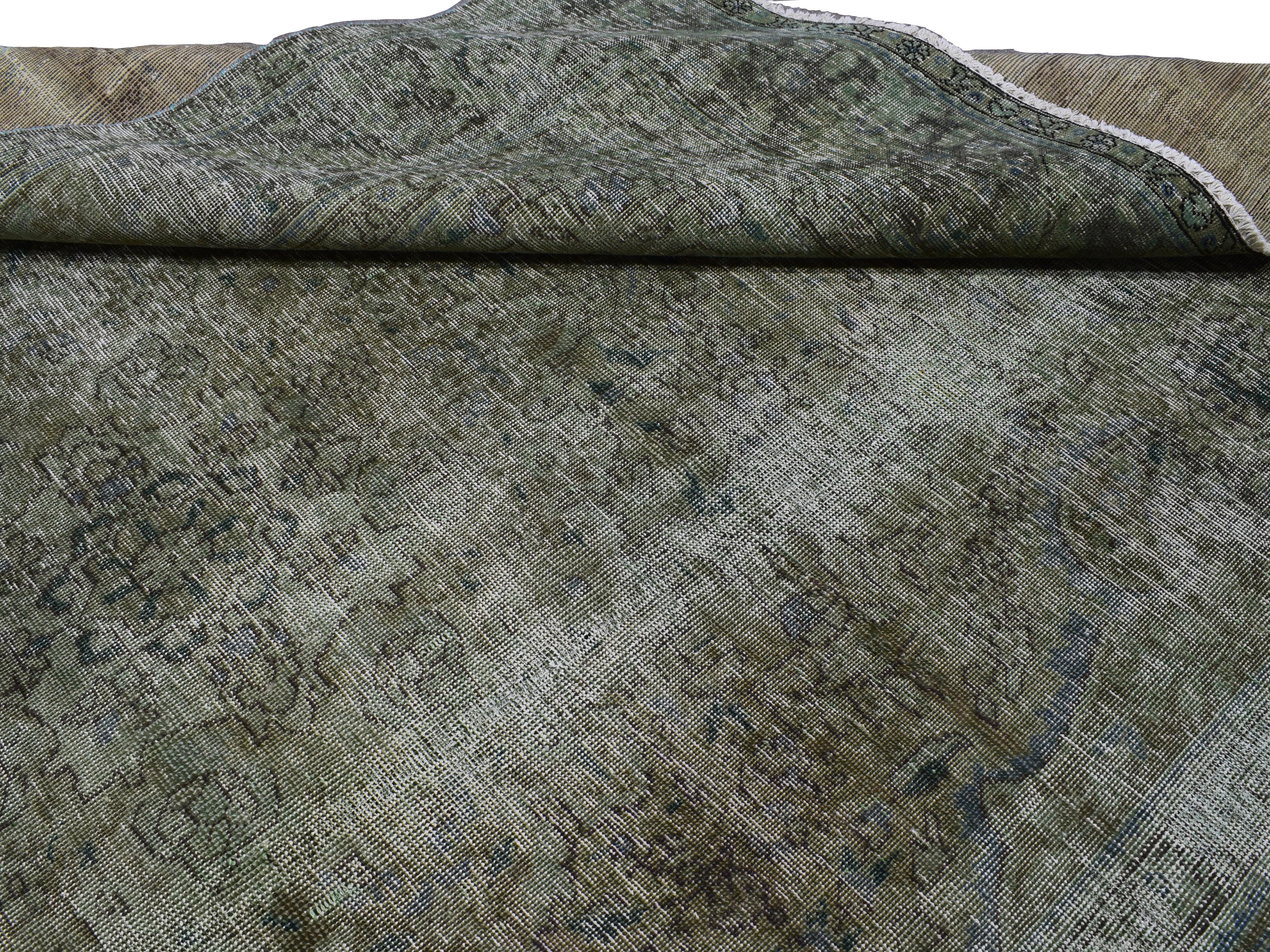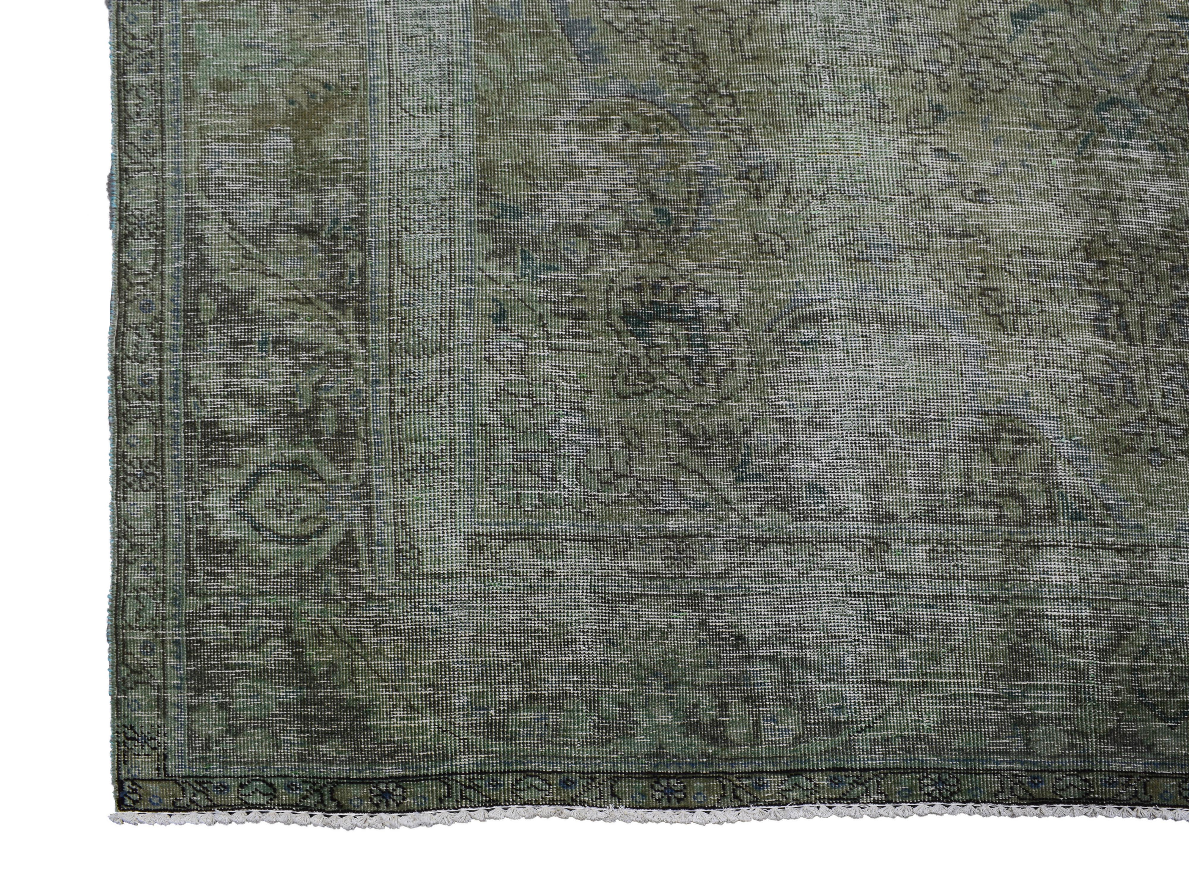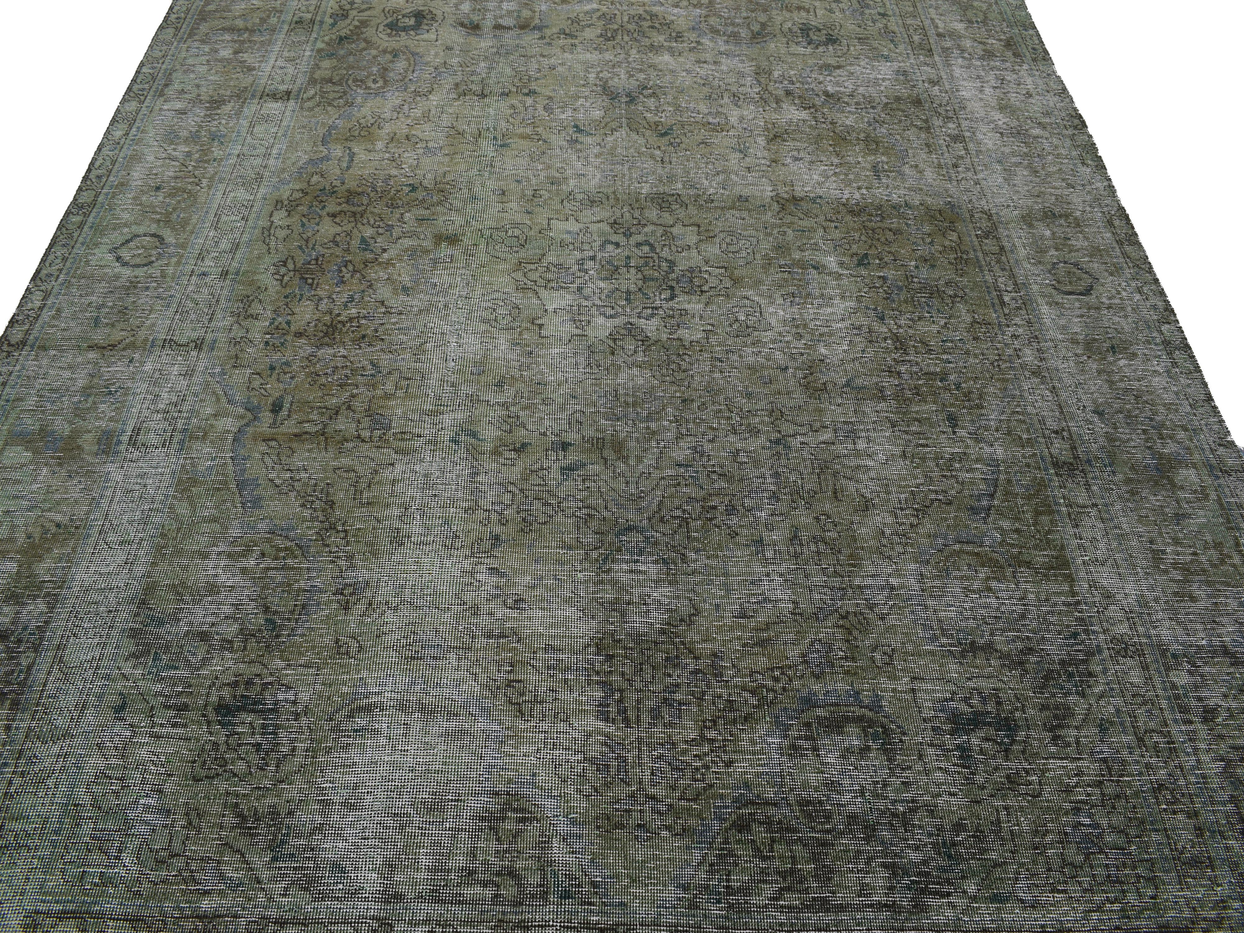 About Overdyed Rug: This beautiful rug was hand-woven in the 1970s in Tabriz, Iran. Later, this vintage rug has been shaved down to a low pile, deep washed and then re-dyed (overdyed) one colour. Overdyed rugs have a low pile height. Over-dyed rugs keep the traditional style with a modern twist. Overdyed rugs are shaved rugs so they do not have a soft pile.