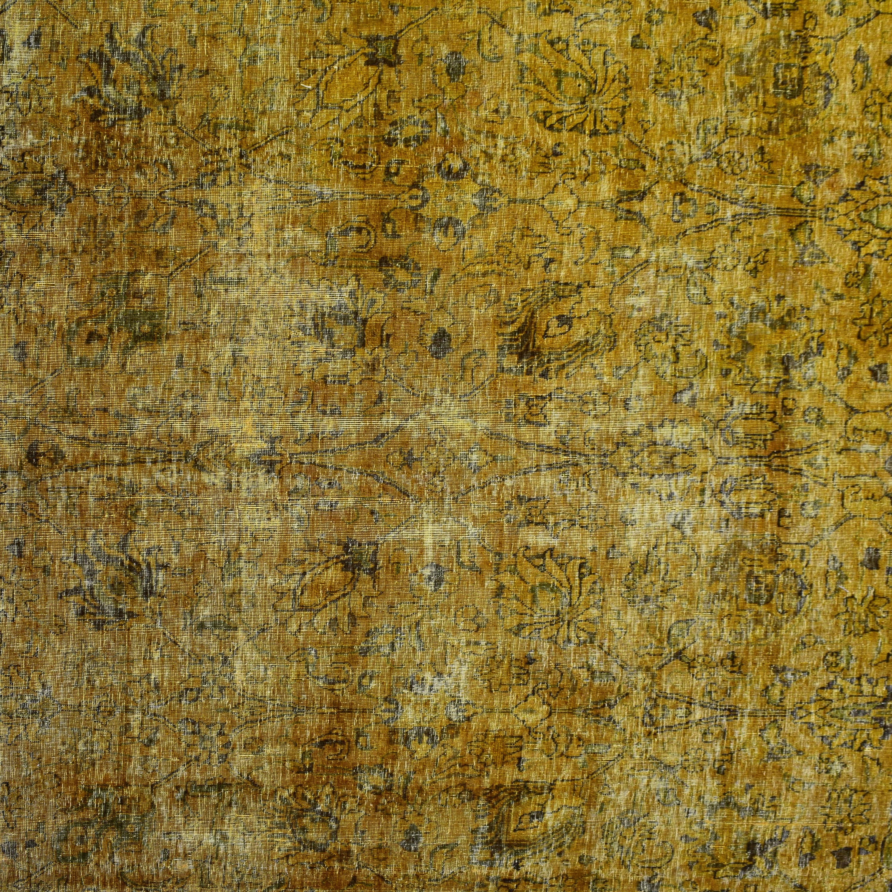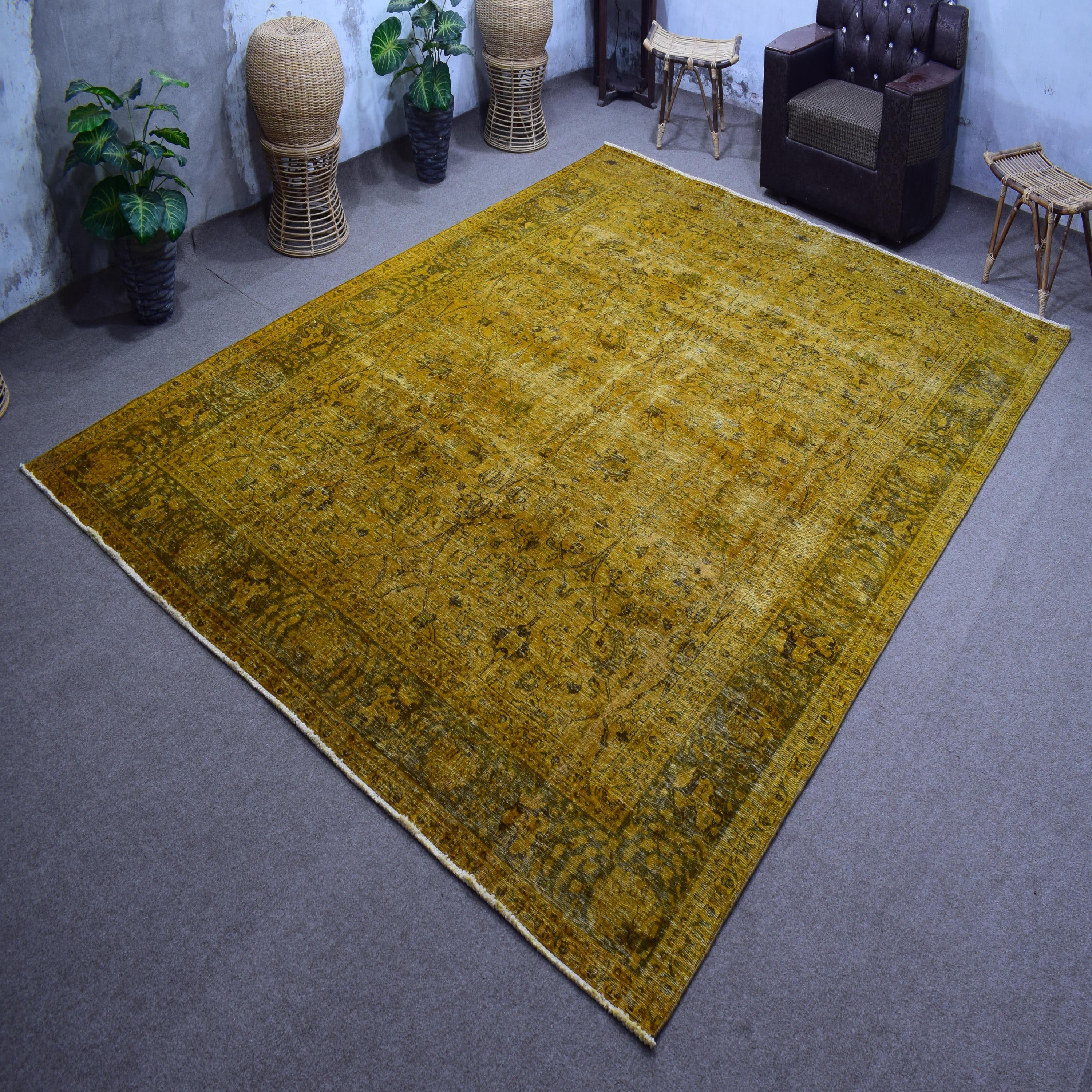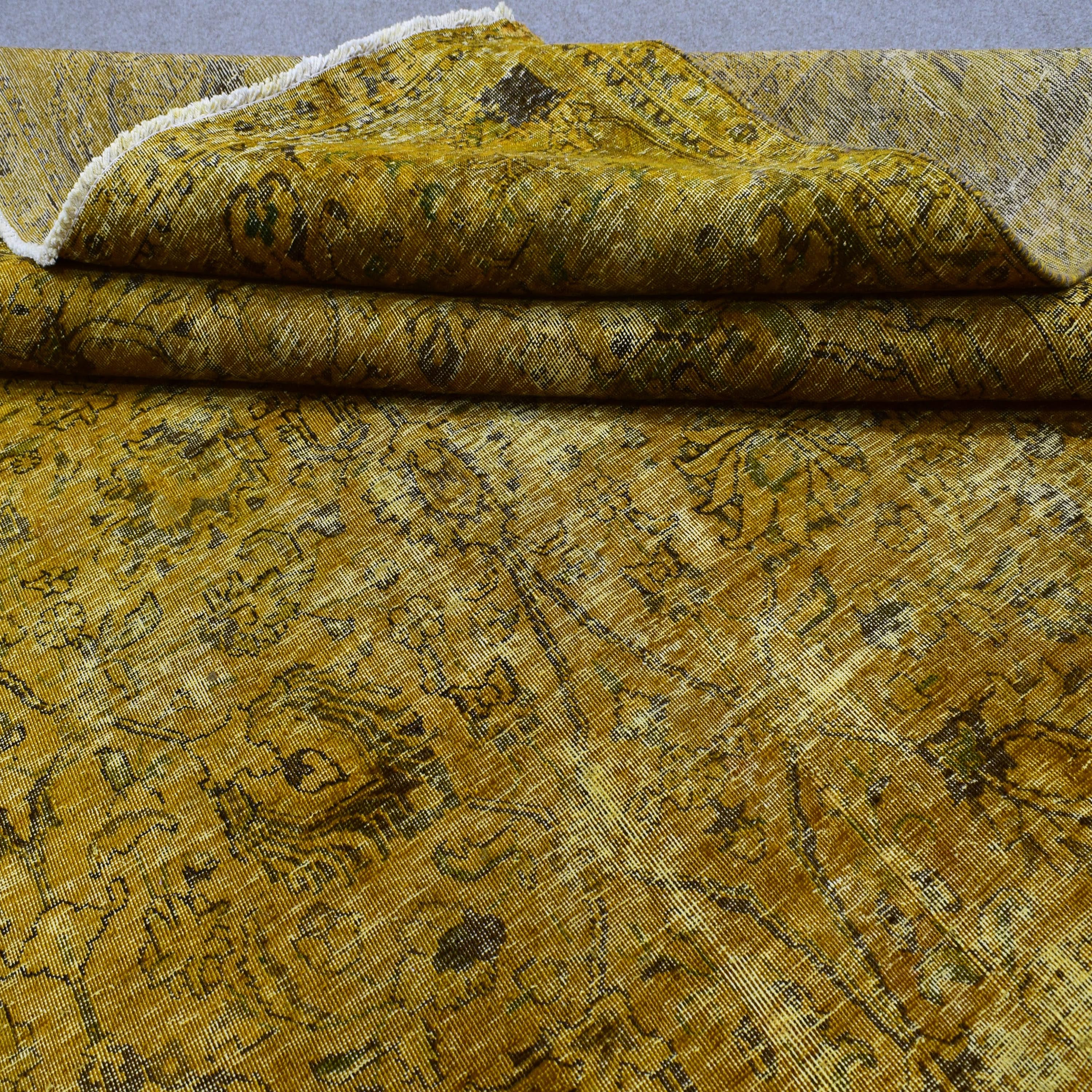 About Overdyed Rug: This beautiful rug was hand-woven in 1970's in Tabriz, Iran. Later, this vintage rug has been shaved down to a low pile, deep washed and then re-dyed (overdyed) one colour. Overdyed rugs have a low pile height. Over-dyed rugs keeps the traditional style with a modern twist. Overdyed rugs are shaved rugs so they do not have a soft pile.