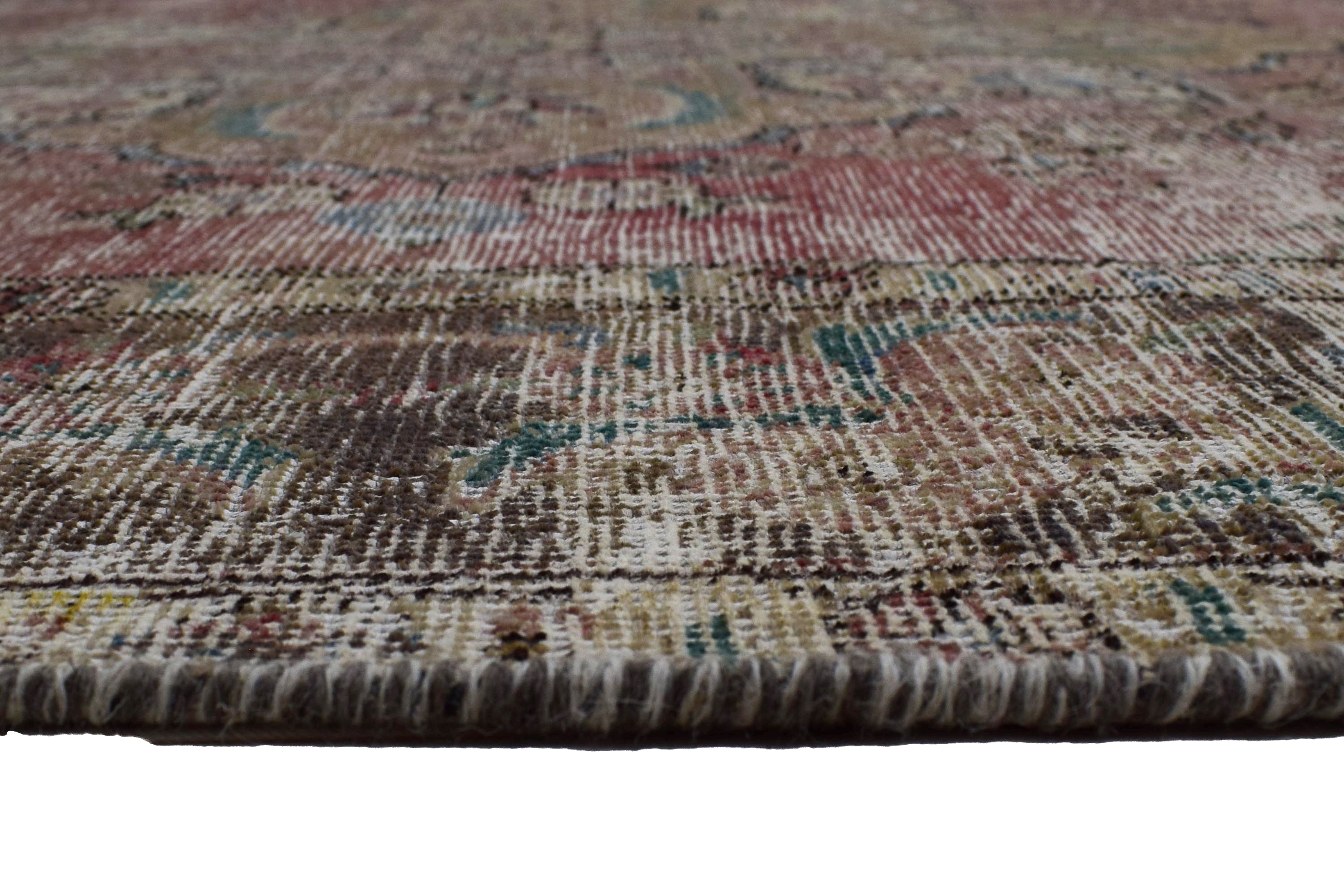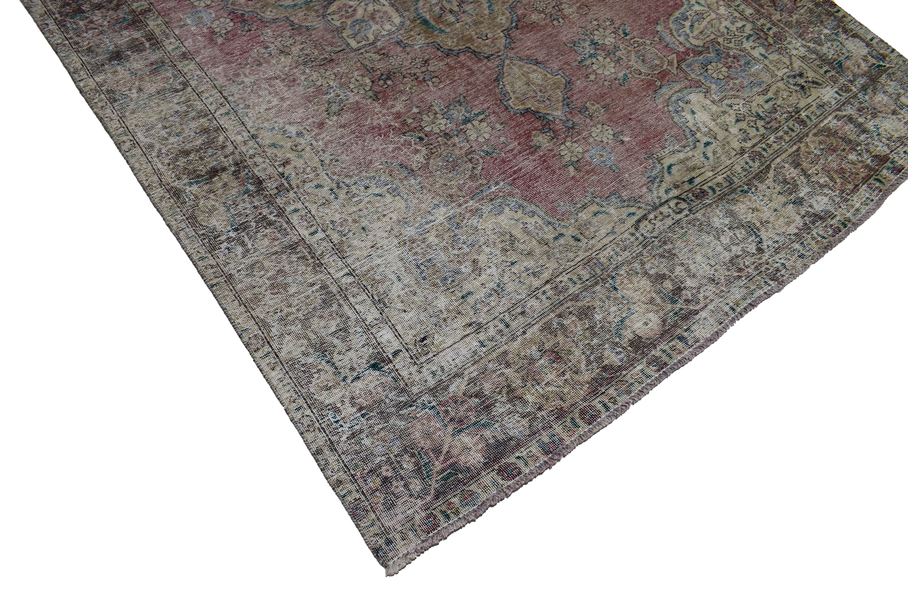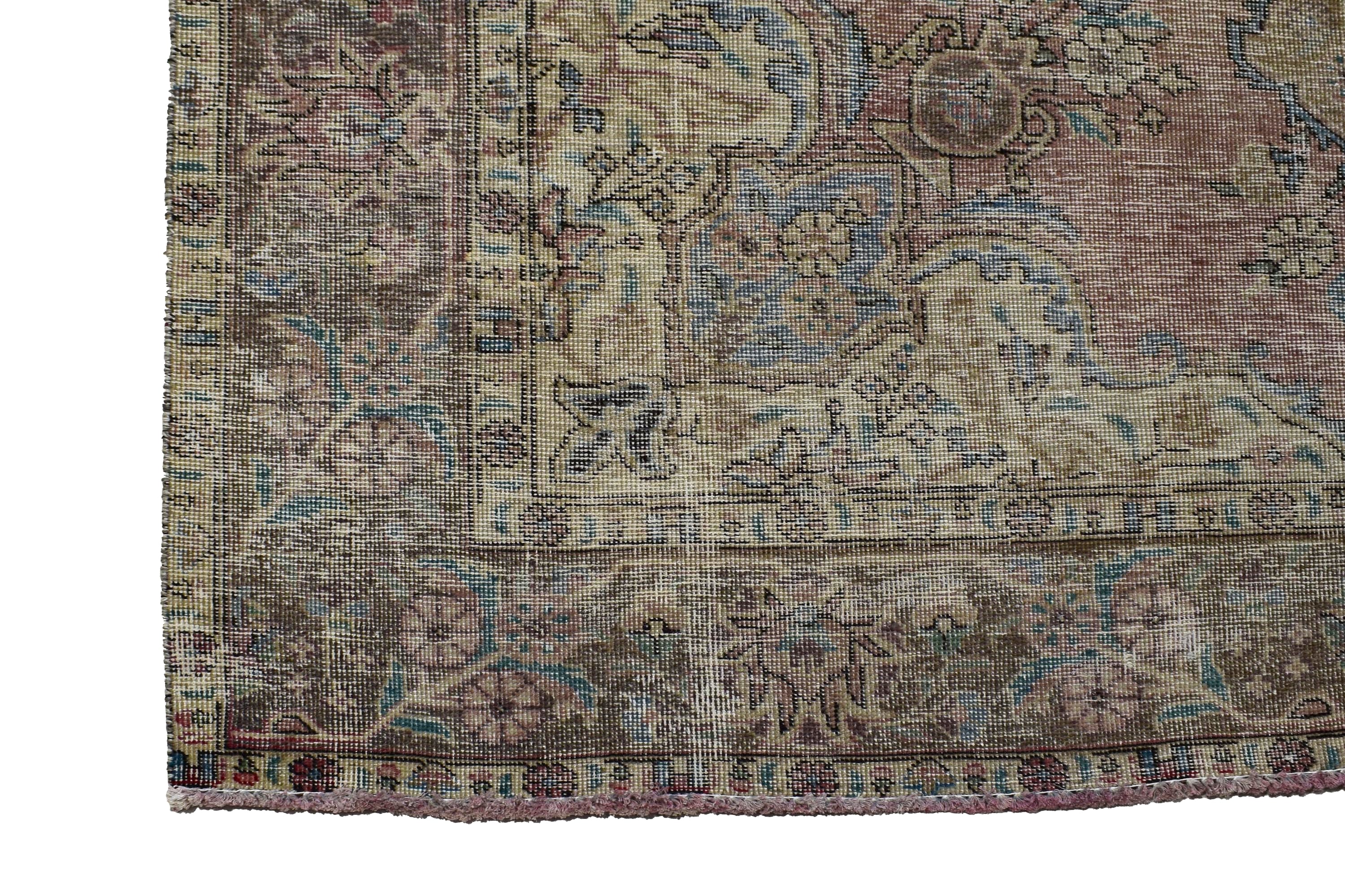 About Distressed Rug: This beautiful rug was hand-woven in 1970's in Tabriz, Iran. Later, this vintage rug has been shaved down to a lower pile to make it a faded rug on purpose. Distressed Rugs represent a trend that has achieved a crossover between fashion and home décor. This new look celebrates rugs that are faded, and worn over time; rugs that nestle into homes as if they’ve always been there. Distressed rugs are shaved rugs so they do not have a soft pile.