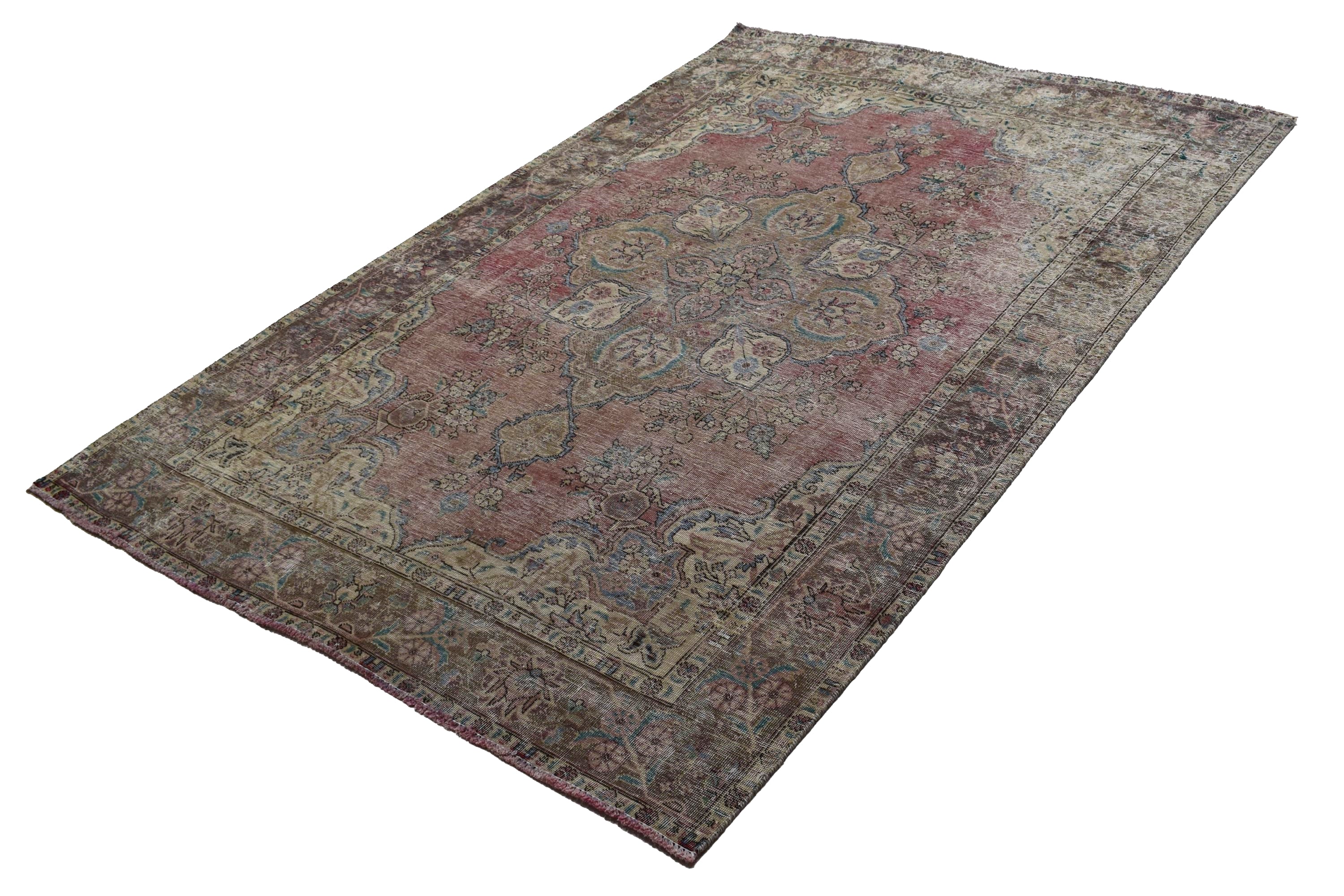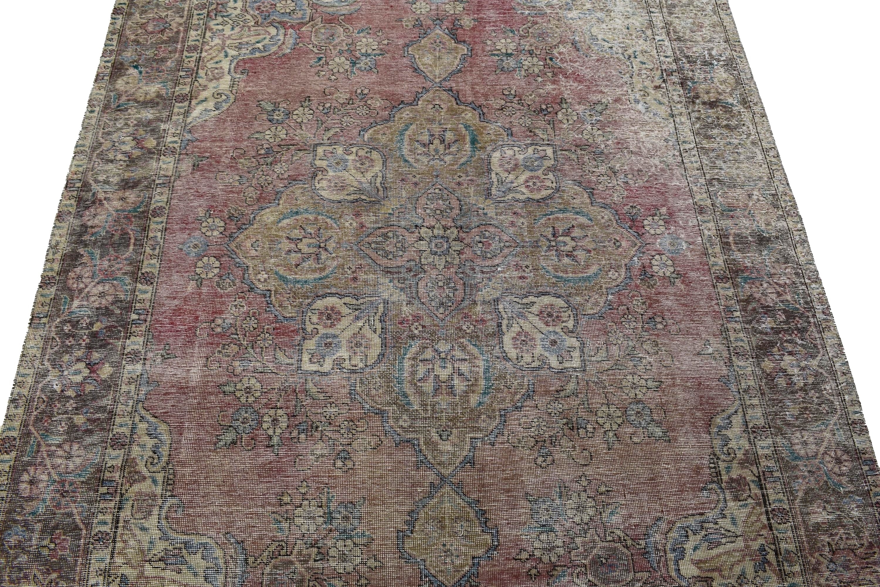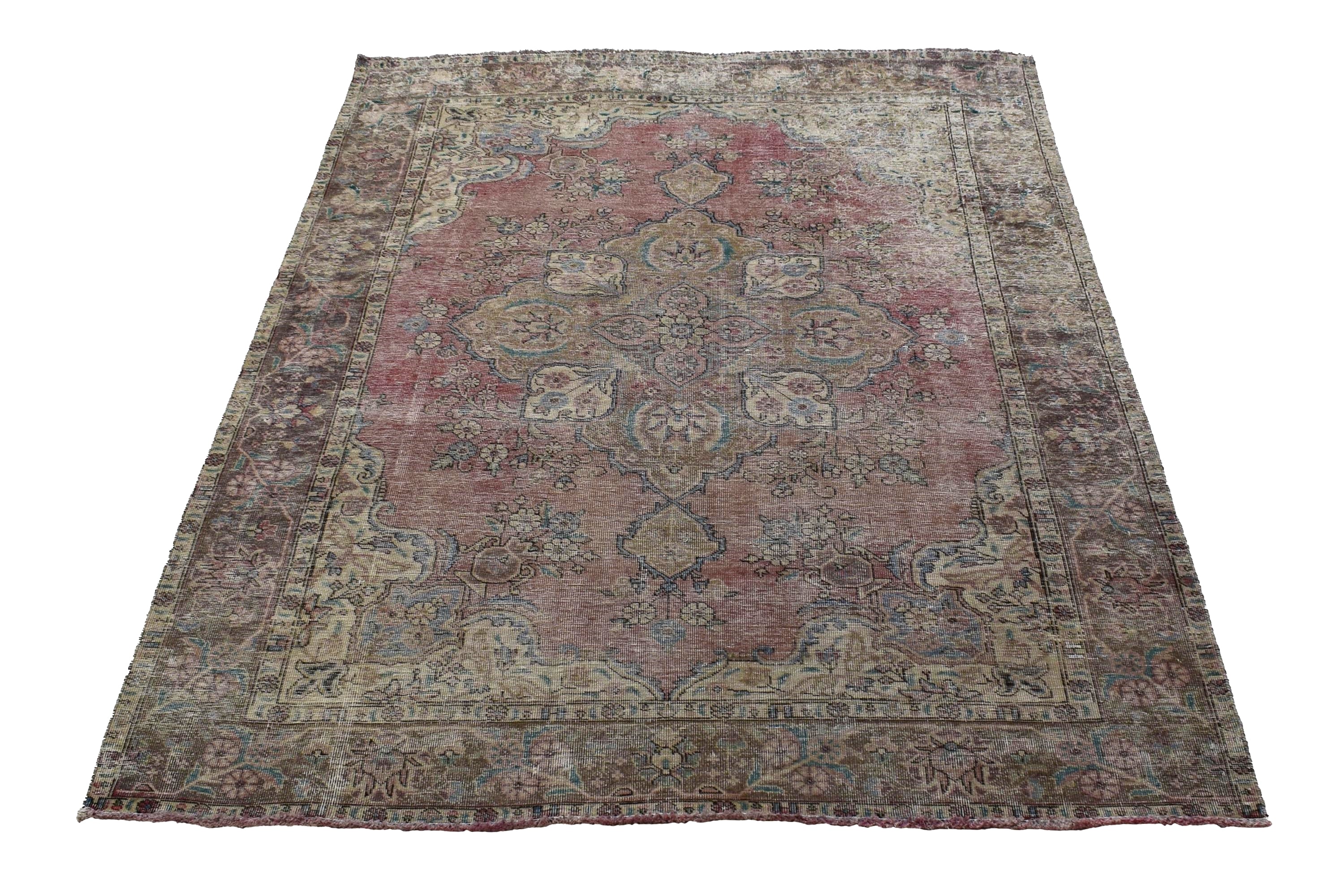 About Distressed Rug: This beautiful rug was hand-woven in 1970's in Tabriz, Iran. Later, this vintage rug has been shaved down to a lower pile to make it a faded rug on purpose. Distressed Rugs represent a trend that has achieved a crossover between fashion and home décor. This new look celebrates rugs that are faded, and worn over time; rugs that nestle into homes as if they’ve always been there. Distressed rugs are shaved rugs so they do not have a soft pile.
