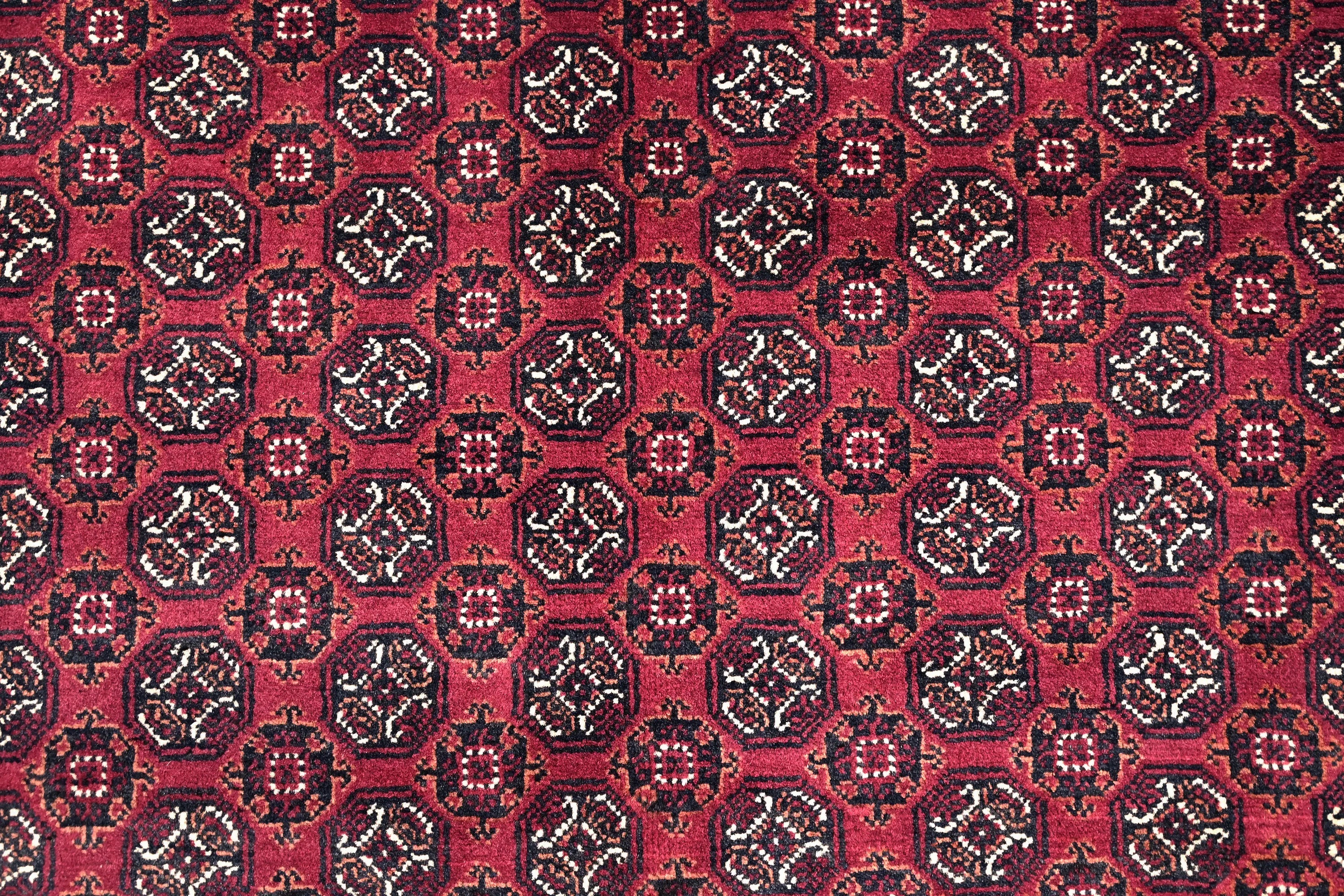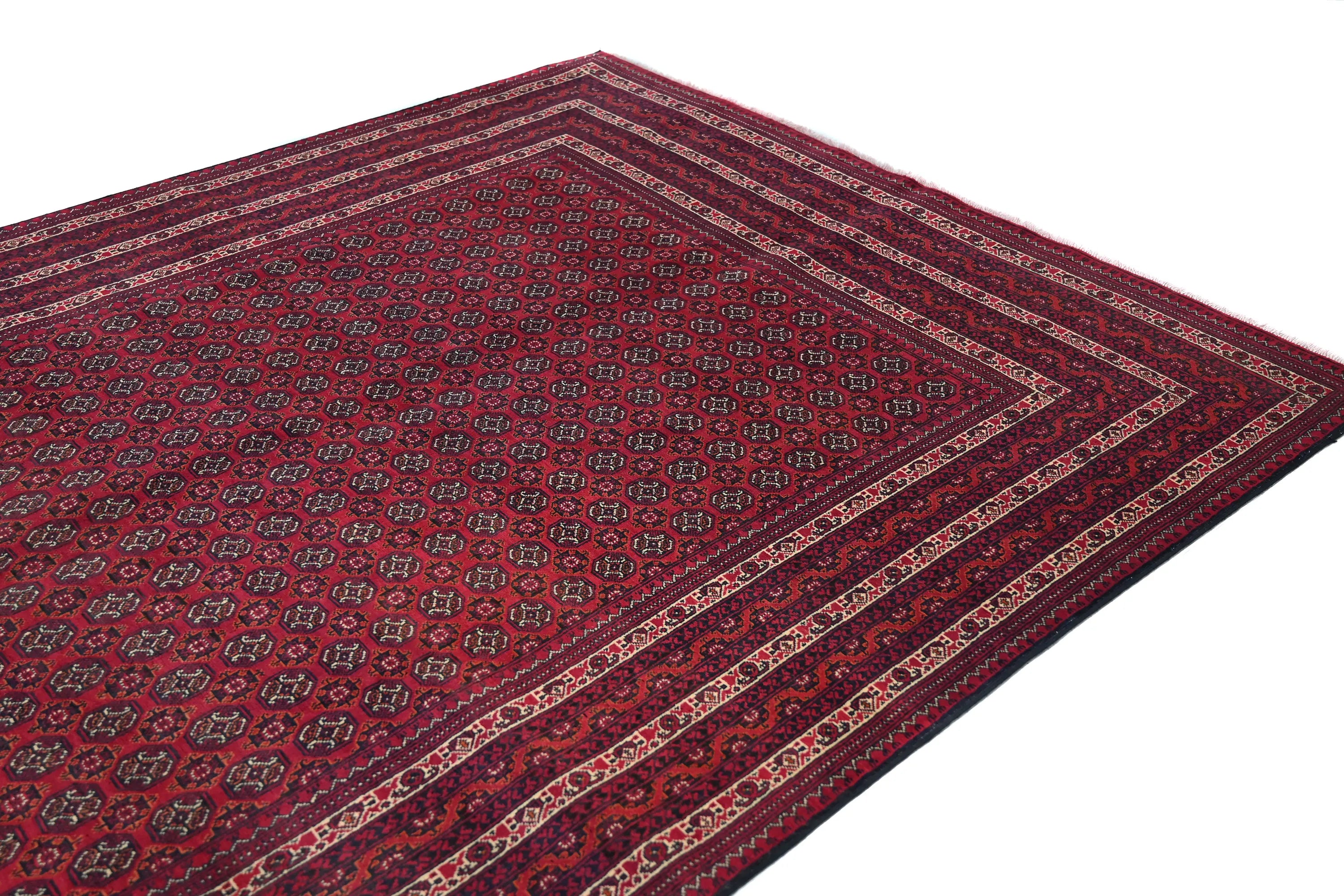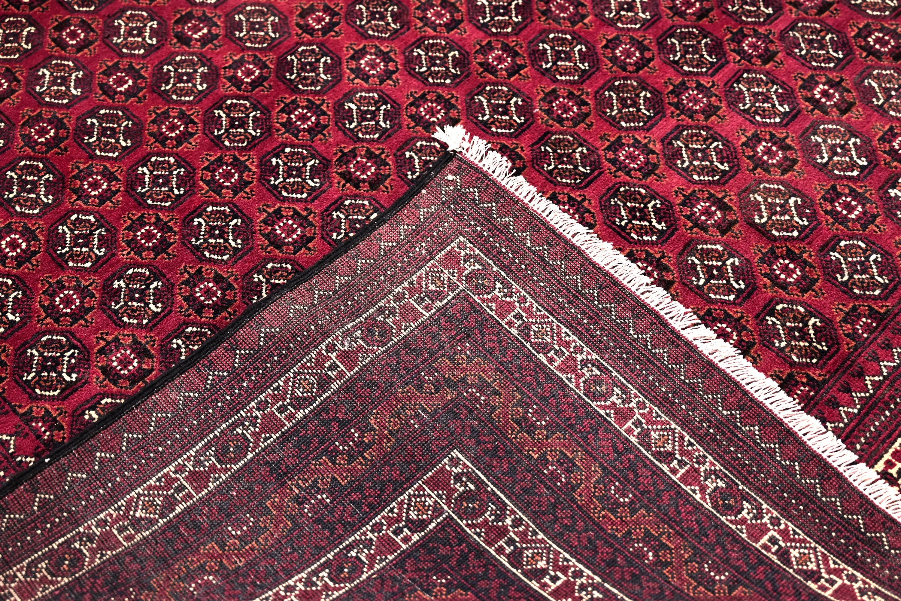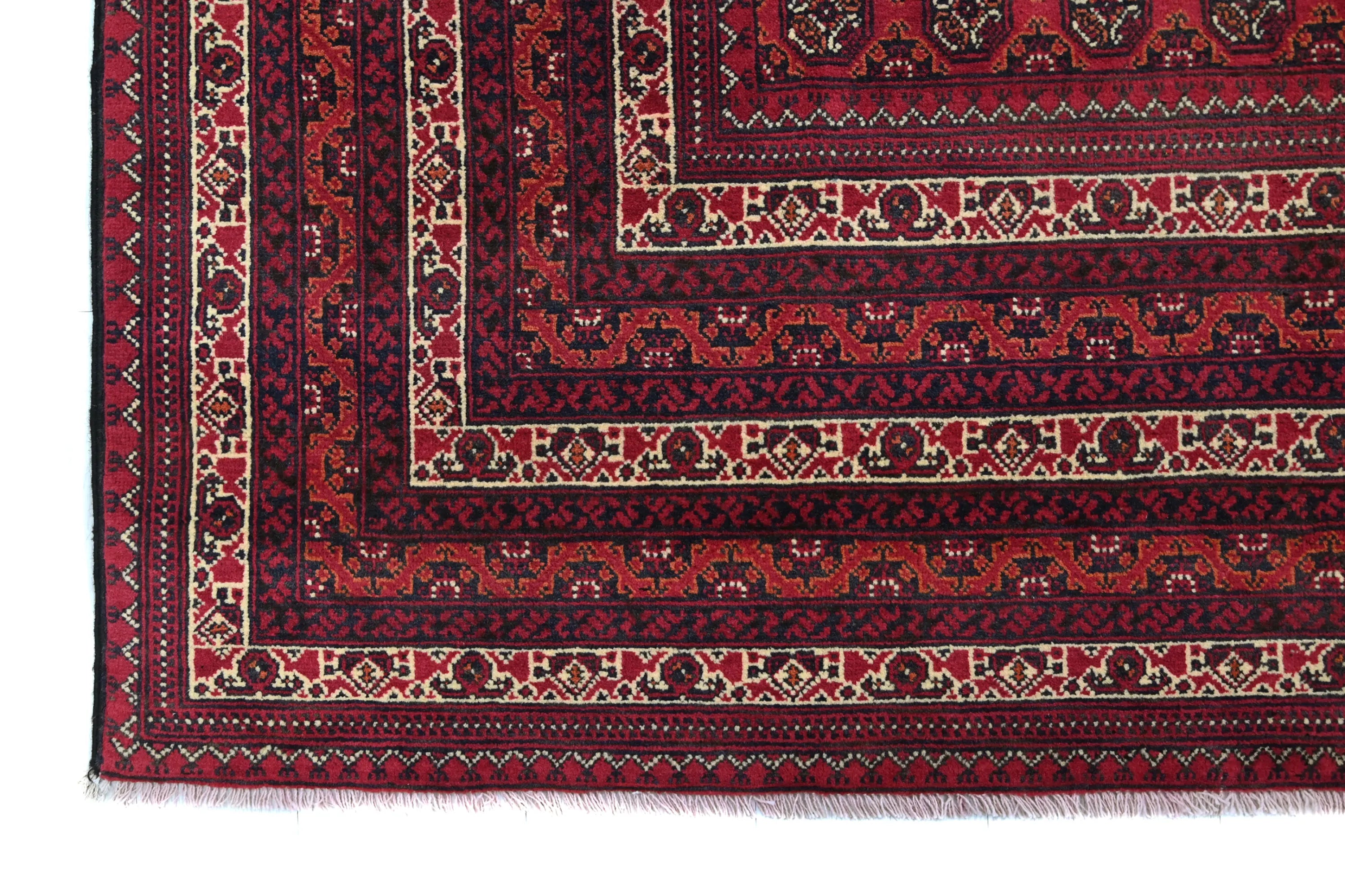 About Biljik Rug: Biljik rugs are hand-knotted in Andkhoy, northern Afghanistan, by skilled Turkmen weavers continuing a centuries-old tradition. Renowned among Afghanistan’s finest rugs, their exceptional quality comes from superior wool. The pile has a natural sheen, feels soft underfoot, and retains dye brilliantly, keeping rich reds and blues vibrant for years. Featuring bold, geometric tribal patterns and high knot density, these rugs achieve remarkable precision and detail, making them both visually striking and enduring in craftsmanship.